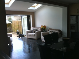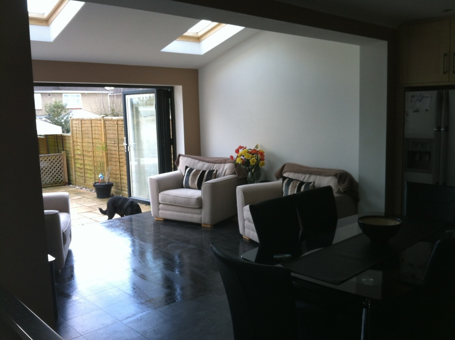Single storey extension with feature oak trussess, purlins and glazed oak gable end.... Internal View