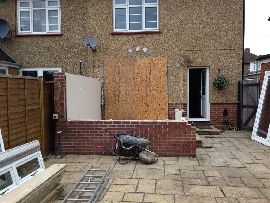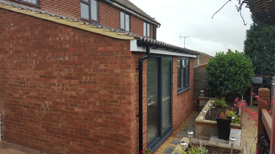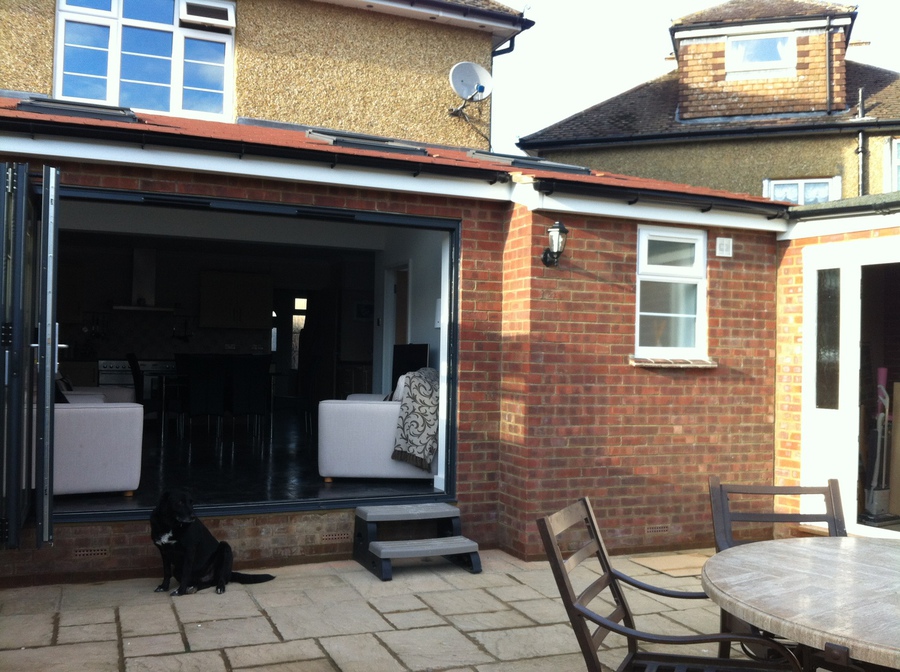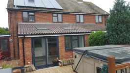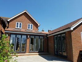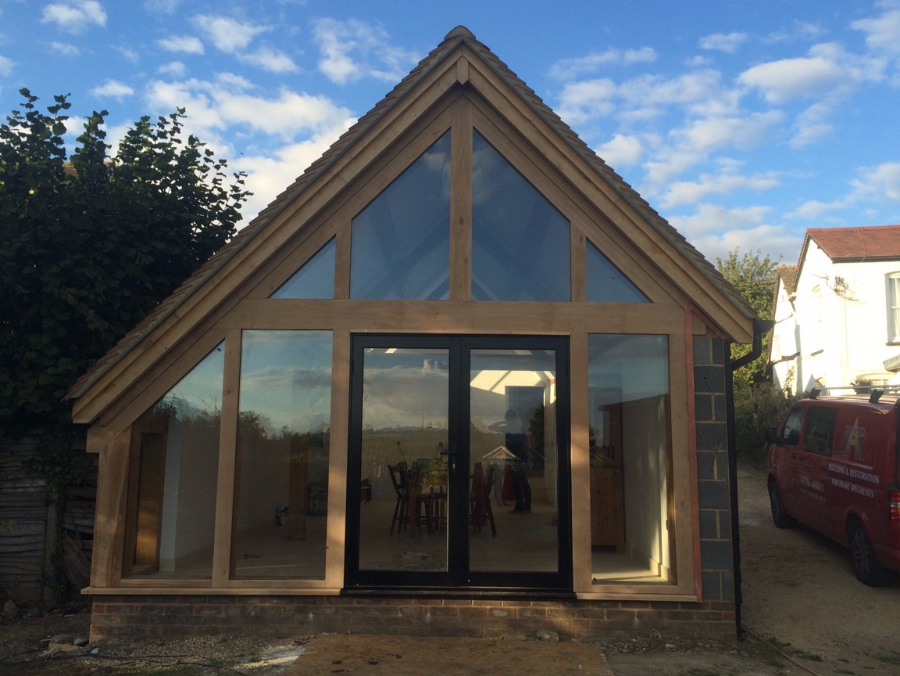 Single Storey extension with feature oak trusses, purlins and glazed oak gable end. Buckinghamshire.